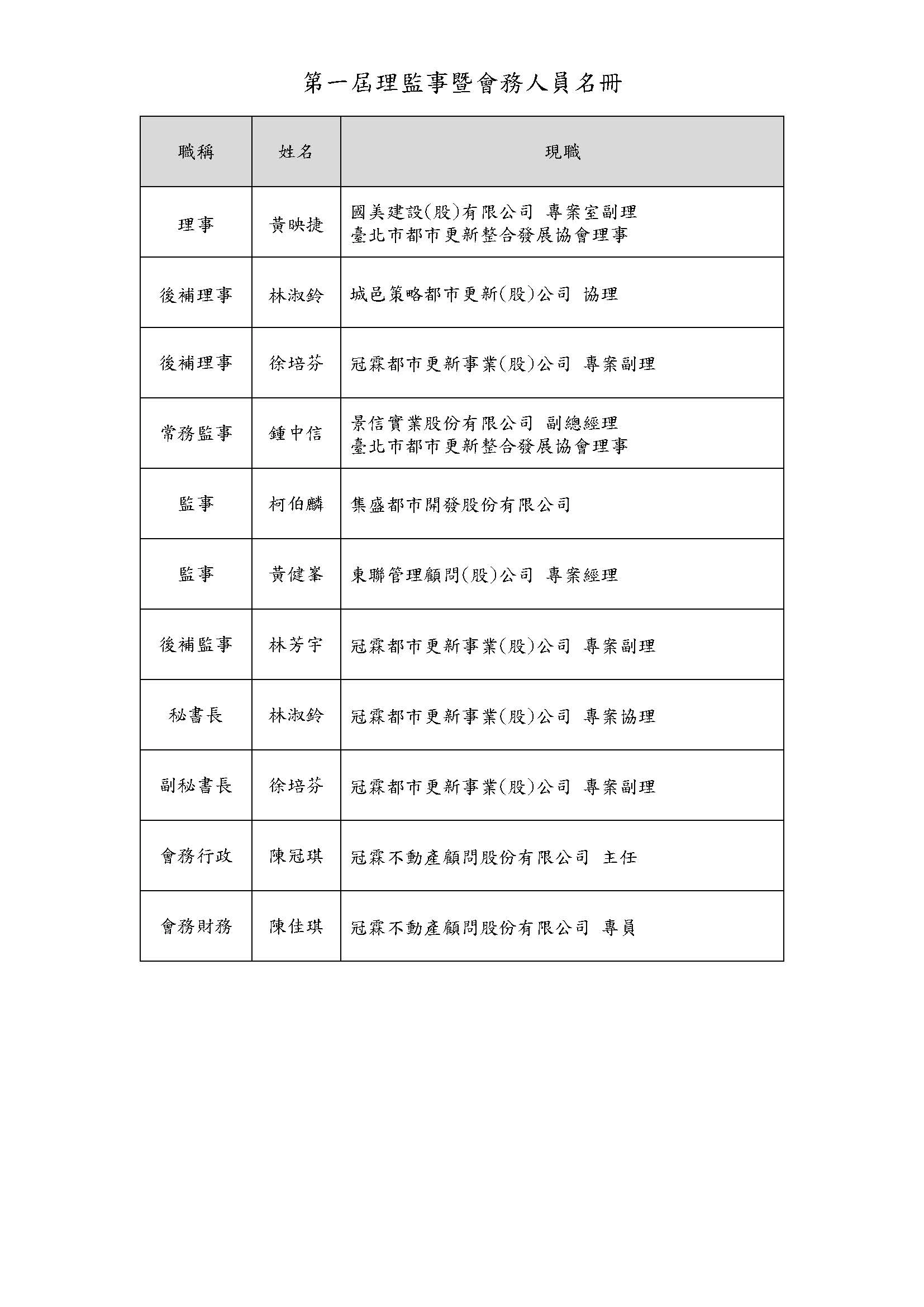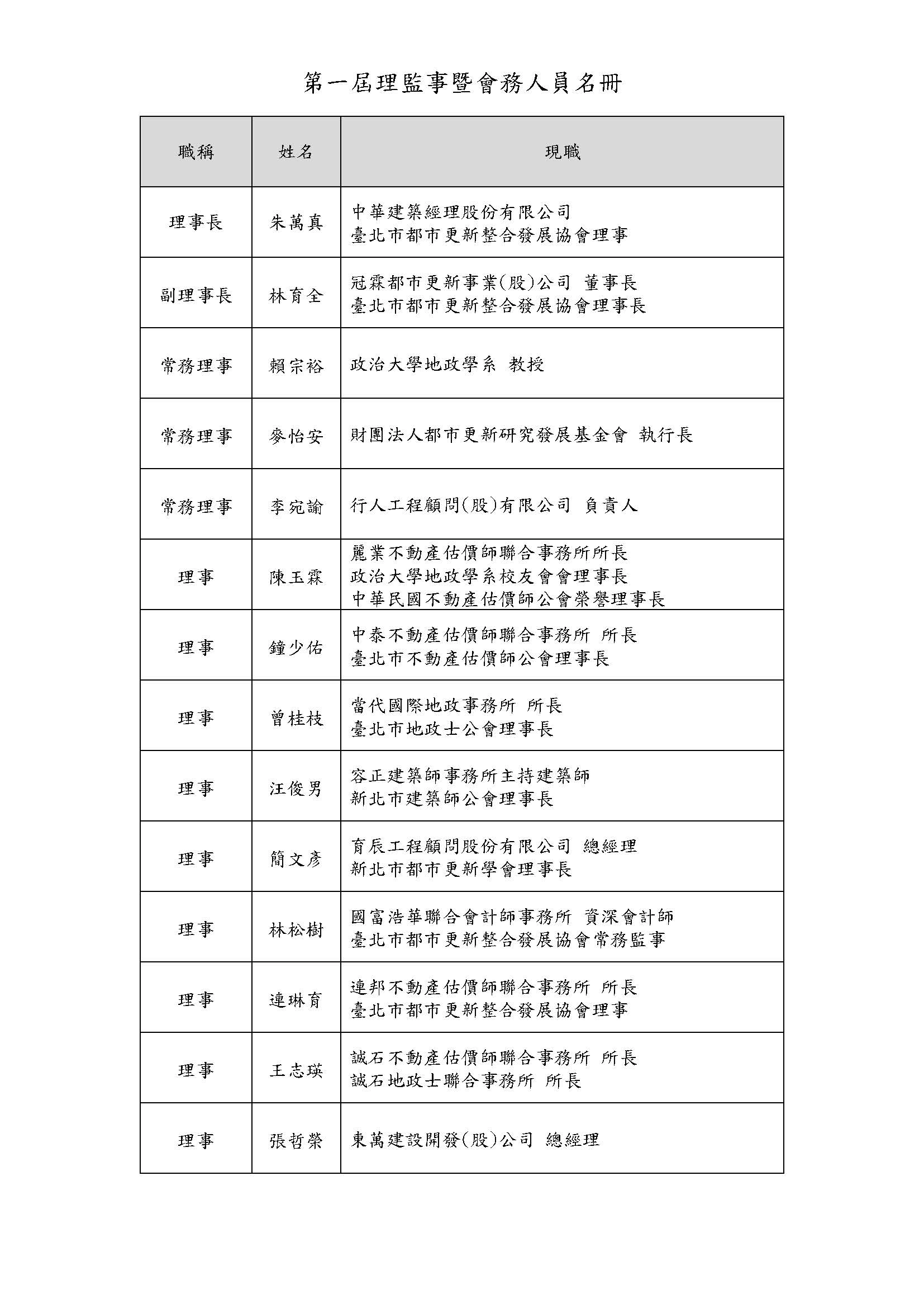 理監事名錄